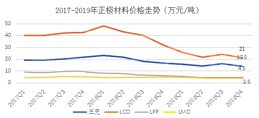 錳酸鋰在價格方面還是比較有優勢的。近兩年來錳酸鋰的價格都是正極材料中最低的。