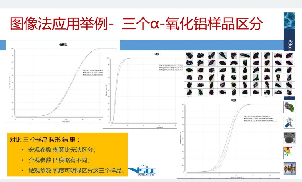 儀思奇(北京)科技發展有限公司的楊正紅總經理帶來了題為《粒度粒形分析技術用于陶瓷和3D打印合金粉的球形度測量》的報告,楊總主要從以下五個方面進行介紹:粒度粒形分析方法及激光衍射法的局限;顆粒球形度的行業應用;球形度表征參數的命名和定義標準化;圖像法粒度粒形分析儀的分類、組成和評價以及不同的顆粒球形度參數在各類粉體評價中的應用。他著重對圖像分析法進行了介紹,舉例說明了其一系列優勢及實際應用。