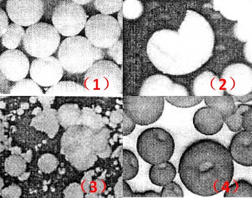 流動性最好的顆粒形狀應該是圓球狀??墒窃谏a過程中,由于種種原因,造粒粉卻往往會形成非圓球狀。造粒粉顆粒的典型形狀有以下四種: