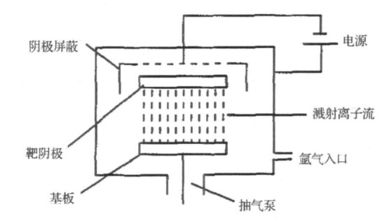 真空濺射鍍在1.3~0.013Pa真空中進行,沉積層物質作為靶陰極,加負偏壓2~3kV,通入氬氣,產生輝光放電,氬離子轟擊靶材,靶材原子逸出,在基板上表面沉積。
