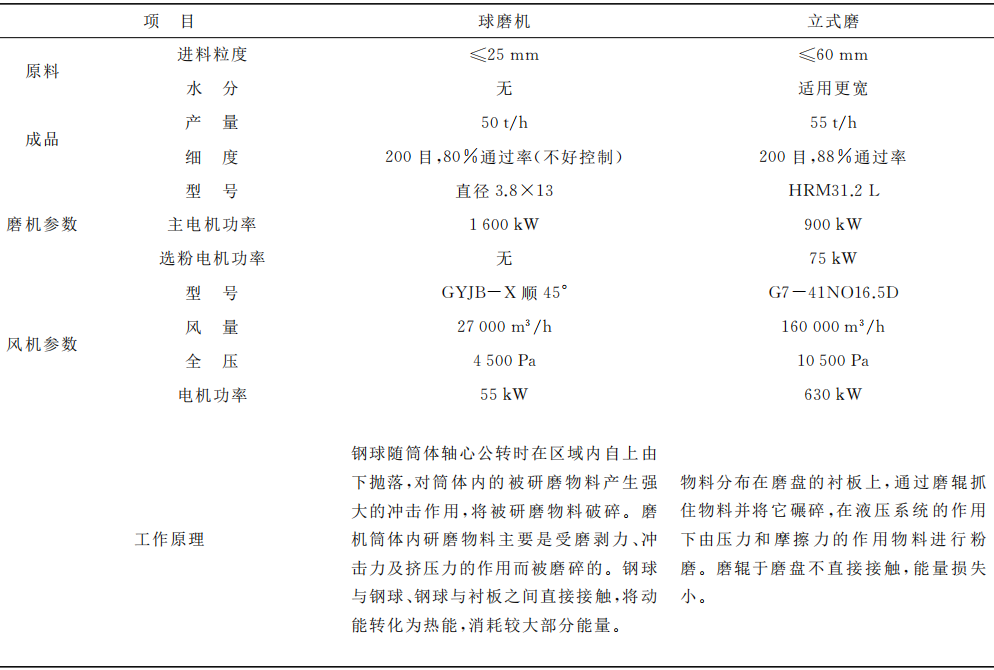 立式磨與球磨機生產線比較對照表