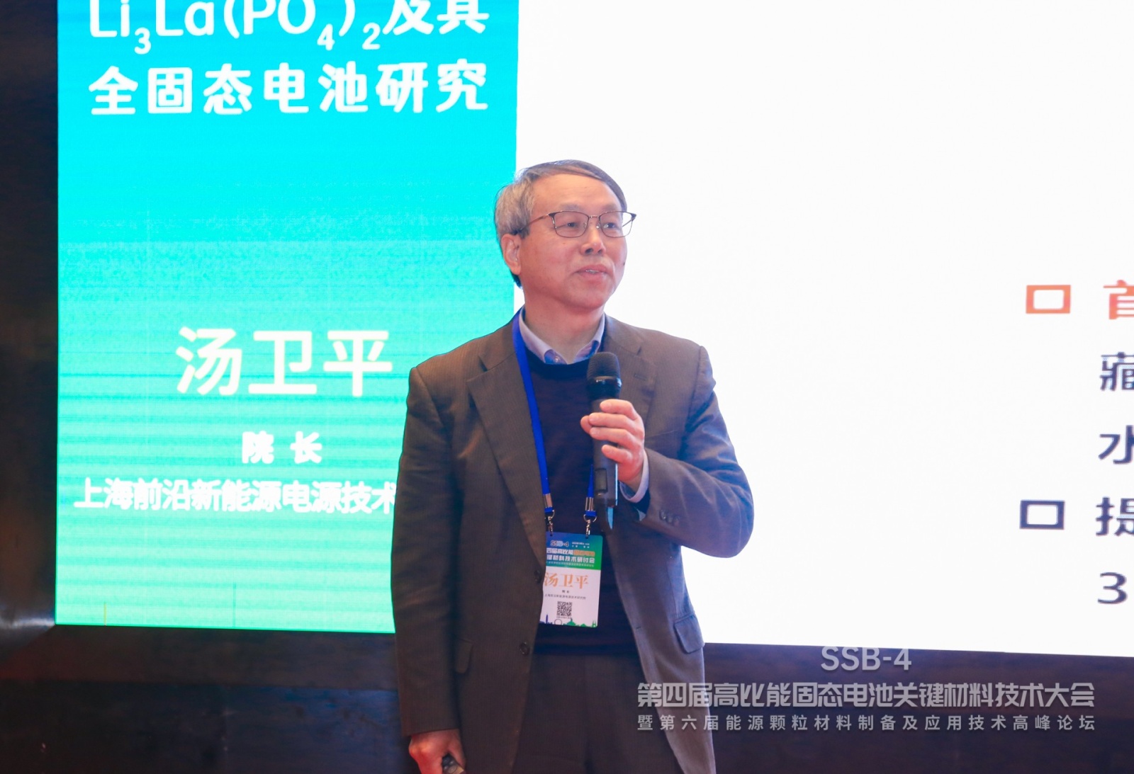 上海前沿新能源電源技術研究院湯衛平院長作《新型固態電解質Li3La(PO4)2及其全固態電池研究》的報告