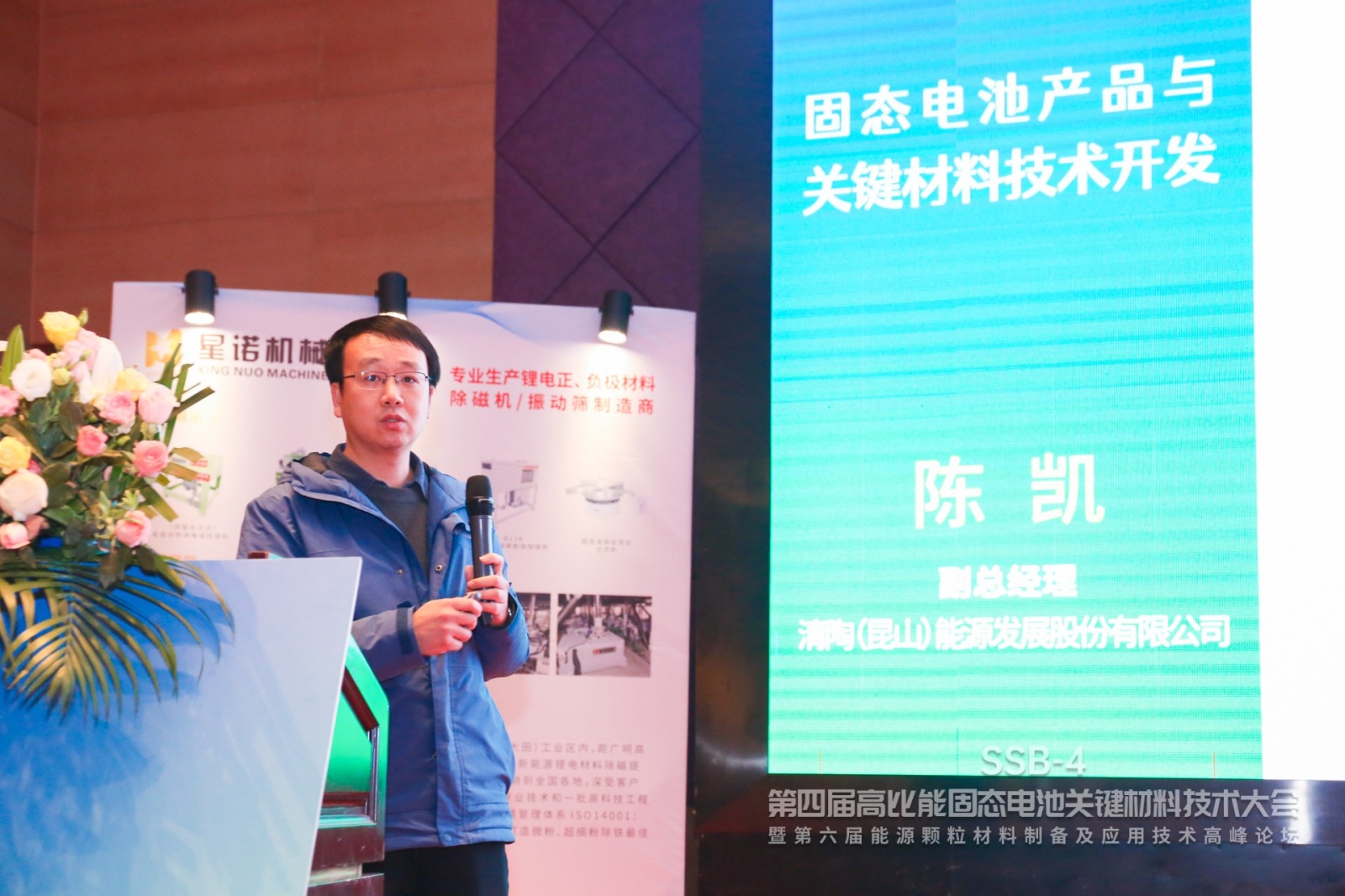 清陶(昆山)能源發展股份有限公司副總經理陳凱博士作《固態電池產品與關鍵材料技術開發》的報告