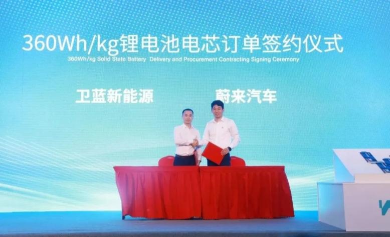 6月30日,衛(wèi)藍新能源在浙江湖州舉行360Wh/kg鋰電池電芯交付簽約暨衛(wèi)藍長三角研發(fā)中心揭牌儀式。衛(wèi)藍新能源董事長俞會根在儀式中表示,衛(wèi)藍開發(fā)兩年多的360Wh/kg半固態(tài)電池正式交付給蔚來,是全行業(yè)的一個里程碑。