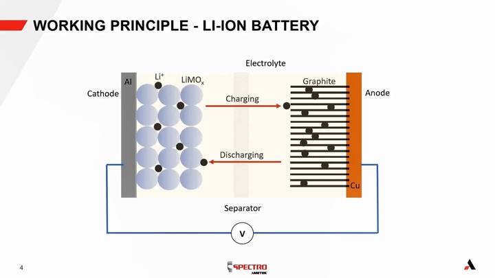 Dirk Wissmann經(jīng)理在報(bào)告中對鋰離子電池的構(gòu)成及工作原理做了簡要介紹,講解了鋰電池的四大主材,正極、負(fù)極、隔膜及電解液。他系統(tǒng)的介紹了XRF的基礎(chǔ)知識(shí),結(jié)合ED-XRF儀器,對XRF技術(shù)進(jìn)行講解,并向大家闡述了SPECTRO XEPOS儀器的特色以及在鋰電石墨負(fù)極、硅負(fù)極痕量元素分析方面的應(yīng)用。