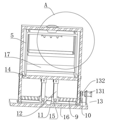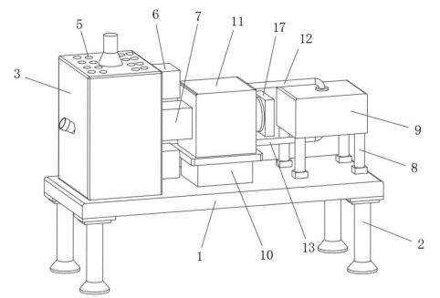摘要:本實用新型中支撐架、矩形板、矩形框、粉碎箱、高壓氣泵、矩形箱、風管、雙向螺紋桿、皮帶輪一、活動塊、連接桿和動力組件,可以對粉碎箱的內壁進行清刮,使得其內部不會殘留粉劑,且有很好的回收價值,可以有效的減少粉劑的浪費,也讓加工的成本降低,且解決了人工清理不便的問題,便于推廣使用。