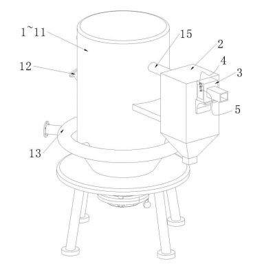 摘要:通過螺旋扇葉對進料斗內部的物料進行攪動和輸送,使進料斗內部的物料能夠快速順利的通過進料斗進入到輸料管內部,然后被輸料管內部的氣流帶動進入至粉碎腔內粉碎,減少物料過多堆積在進料斗內部,導致進料斗出口被堵住物料難以進行粉碎的問題,提高了粉碎的穩定性。