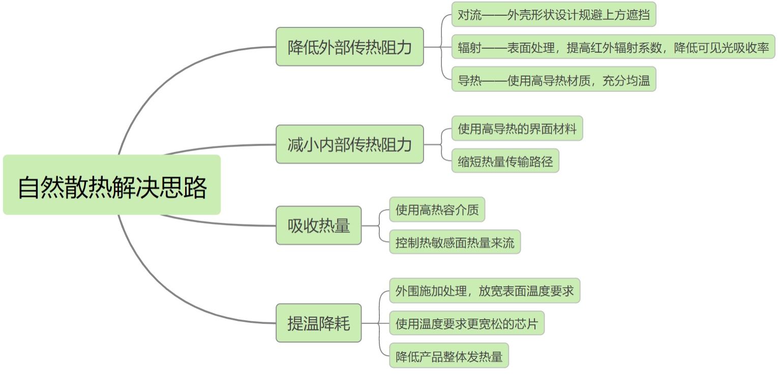 手機散熱分為主動散熱和被動散熱兩種方式。主動散熱方式是指從外部輸入能源的散熱方式,如風(fēng)冷、水冷等,而依靠設(shè)備本身的設(shè)計結(jié)構(gòu)、無需消耗能源實現(xiàn)的自然散熱叫做被動散熱。在輕薄化的發(fā)展趨勢下,手機散熱方式主要是被動散熱(自然散熱)。在封閉產(chǎn)品中,解決自然散熱問題的思路如下。