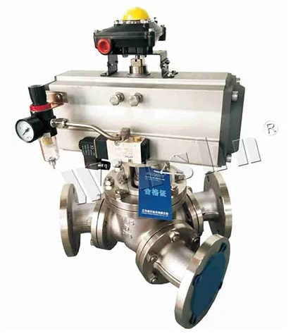 Y型三通球閥,又稱換向球閥,全通徑設計,便于流量統計及計算,便于執行機構裝置連接安裝,此款產品流道設計,進出口相通,設計角度135°,內通道流速曲線型設計,避免流道急速轉角的優點,特別適用與粉末,顆粒等介質。