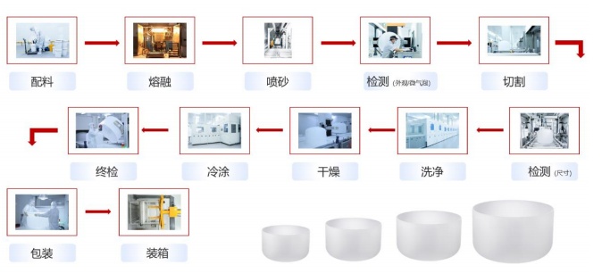 該工序是制作石英坩堝的核心工序,直接決定了石英坩堝的純度、強度、微氣泡密度水平。