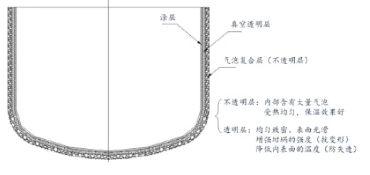 內(nèi)層是3-5mm的透明層,氣泡較少分布稀疏,直徑在10~100μm,稱為氣泡空乏層,結(jié)構均勻致密,以增強坩堝的強度,并且降低內(nèi)表面的溫度防止析晶。外層是不透明層,氣泡較密集,且直徑在50~100μm,稱為氣泡復合層,這樣的結(jié)構使得坩堝受熱均勻,保溫效果好。