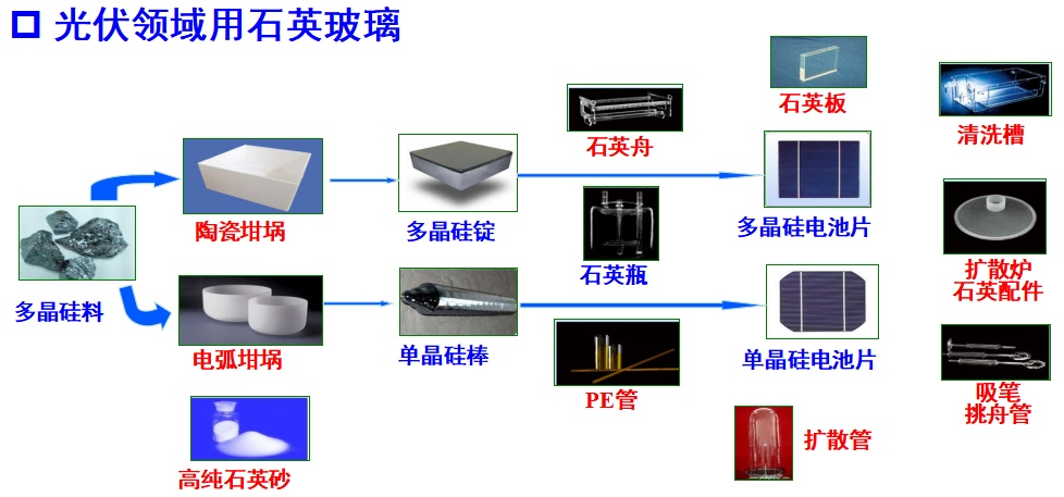 石英玻璃是國民經濟領域、國家重大專項工程和國防工業中不可代替的基礎性原材料,廣泛應用于航天、航空、兵器、船艦、核技術、激光、電子、光通信、電光源、太陽能和半導體等高新技術領域。
