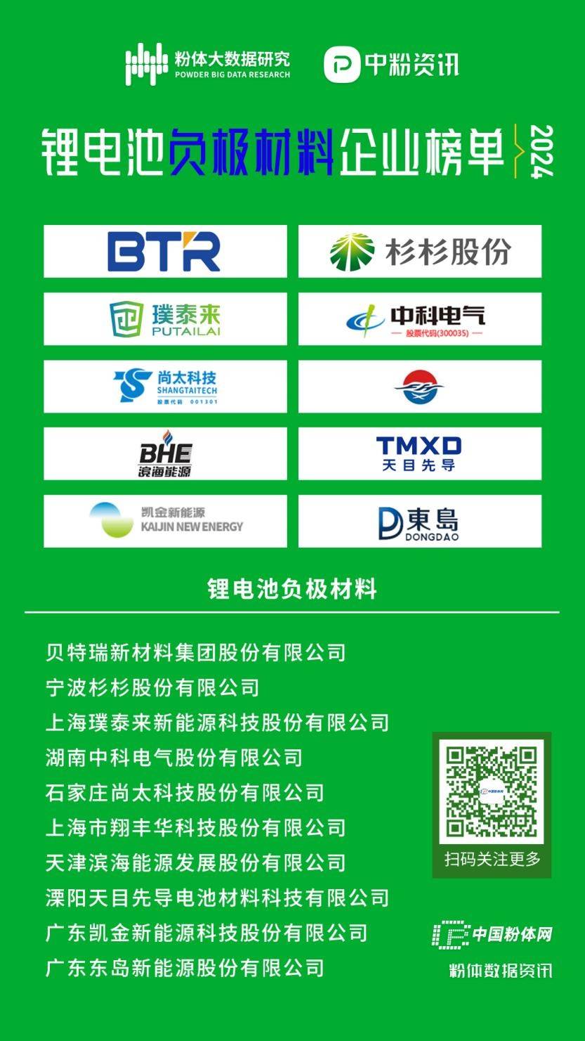 依據(jù)各企業(yè)官網(wǎng)、半年報(bào)及行業(yè)公開(kāi)信息等,2024年國(guó)內(nèi)十大鋰電池負(fù)極材料企業(yè)為貝特瑞、杉杉股份、璞泰來(lái)、中科電氣、尚太科技、翔豐華、濱海能源、天目先導(dǎo)、凱金新能源、東島新能源。