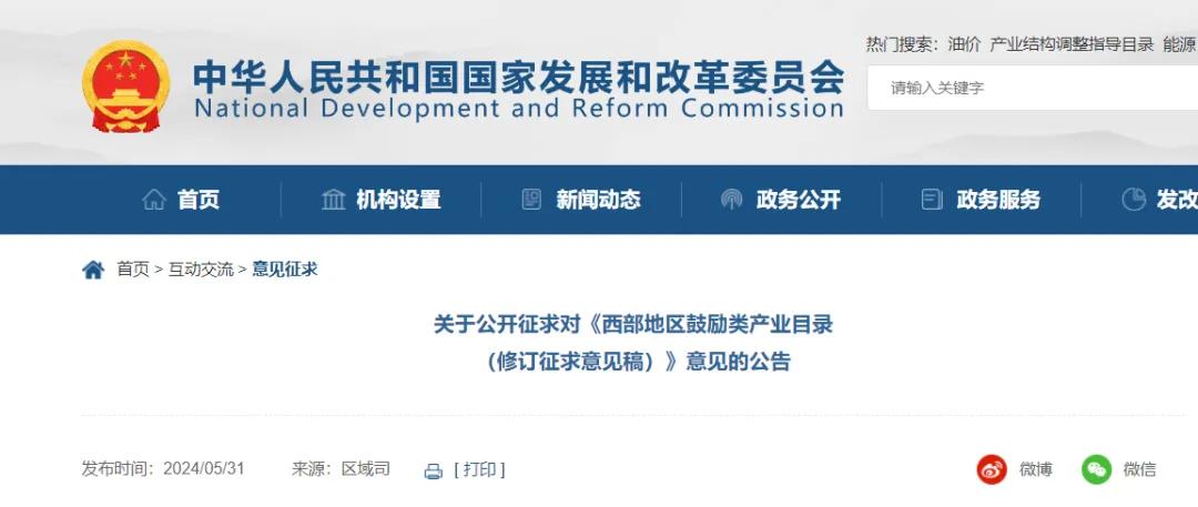 《西部地區(qū)鼓勵(lì)類產(chǎn)業(yè)目錄(修訂征求意見稿)》