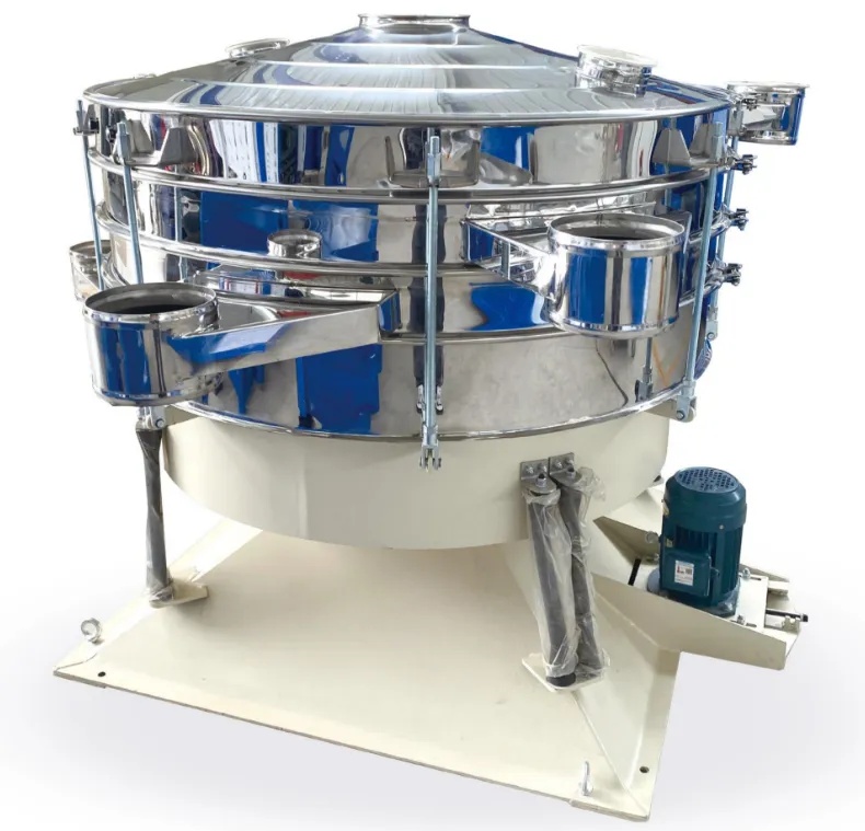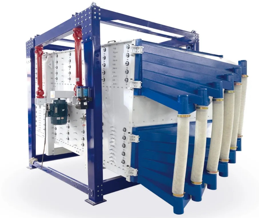 直線振動篩利用振動電機(jī)激振作為振動源,使物料在篩網(wǎng)上被拋起,同時向前作直線運(yùn)動,物料從給料機(jī)均勻地進(jìn)入篩分機(jī)的進(jìn)料口,通過多層篩網(wǎng)產(chǎn)生數(shù)種規(guī)格的篩上物、篩下物、分別從各自的出口排出。具有耗能低、產(chǎn)量高、結(jié)構(gòu)簡單、易維修、全封閉結(jié)構(gòu)、無粉塵溢散、自動排料,更適合于流水線作業(yè)。圓形搖擺篩圓形搖擺篩是一種仿人工搖動的低頻旋振篩,物料在篩面做非線性的三維運(yùn)動,既有圓周運(yùn)動又有上拋弧運(yùn)動,篩分精度為90-99%,篩分產(chǎn)量是普通振動的5-10倍,可以實(shí)現(xiàn)5層分級,適用于500目內(nèi)圓球狀、圓柱狀、片狀乃至不規(guī)則形狀易堵網(wǎng)且需要精密篩分的物料。