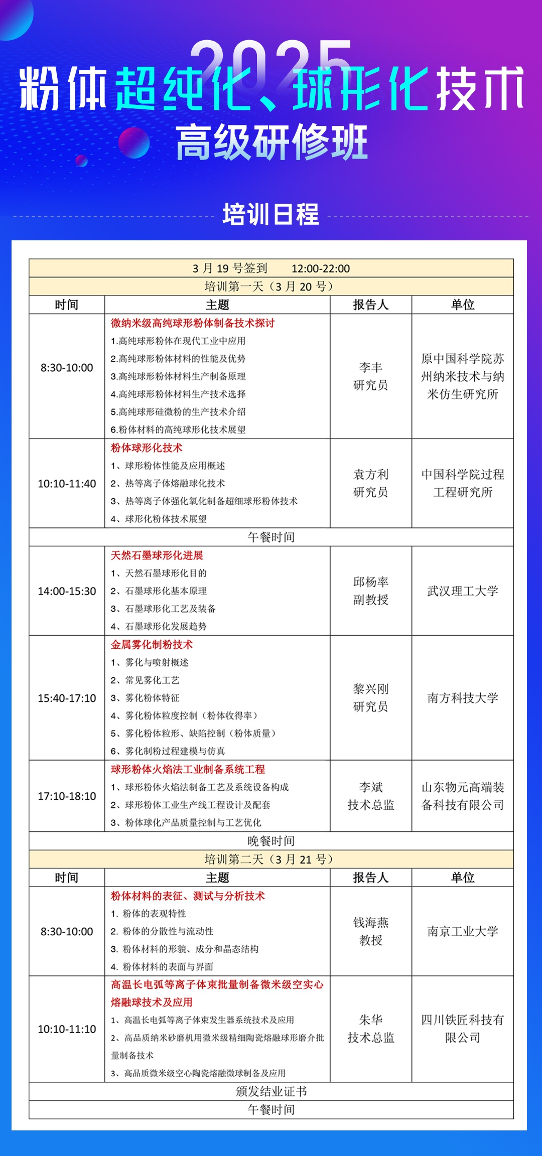 深入了解粉體超純化、球形化技術,2025粉體超純化球形化技術高級研修班在蘇州等你!