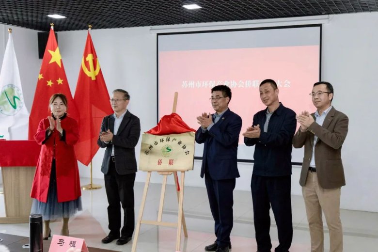 李文輝主席與馬楫會長為協會僑聯揭牌,這一揭牌儀式標志著蘇州市環保產業協會僑聯正式啟航。