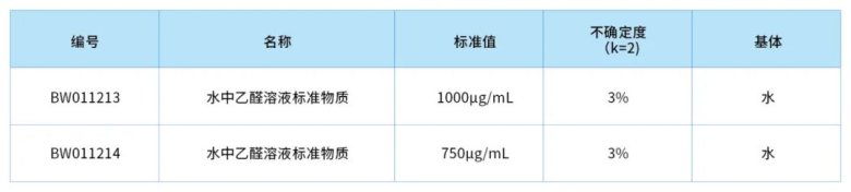 本標準物質以純度經準確定值的乙醛(CAS號:75-07-0)和超純水為原料,采用稱量-容量法準確配制而成。