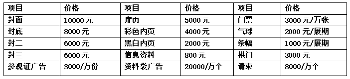 國外企業:3M×3M 1800美元 國外企業:180美元/平方米 (不少于36平方米)