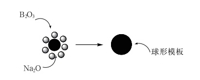 球形模板理論是指以表面活性劑或反應(yīng)體系中熔點較高的物質(zhì)形成的最小球體為模板,BN球面層層增加,直徑逐漸擴大,最終形成一個BN球。
