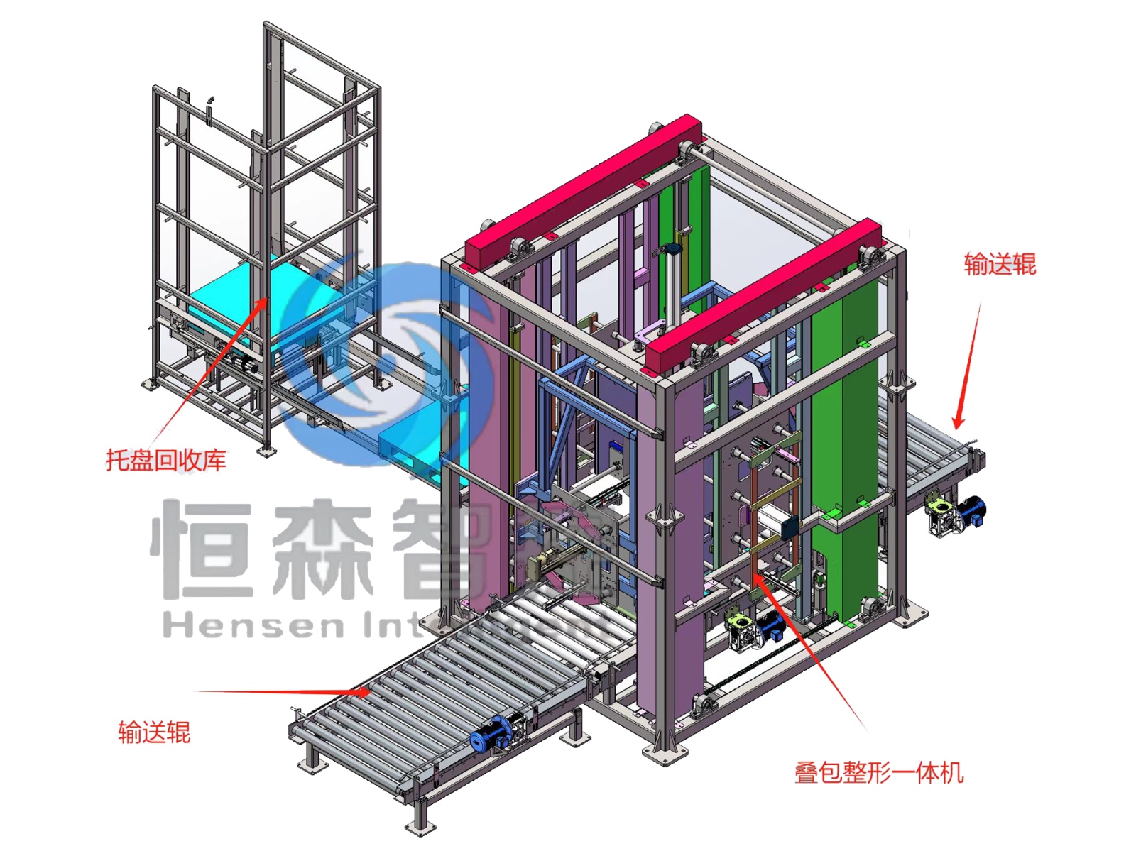 整形疊包,托盤(pán)回收等,全程無(wú)人工干預(yù)。