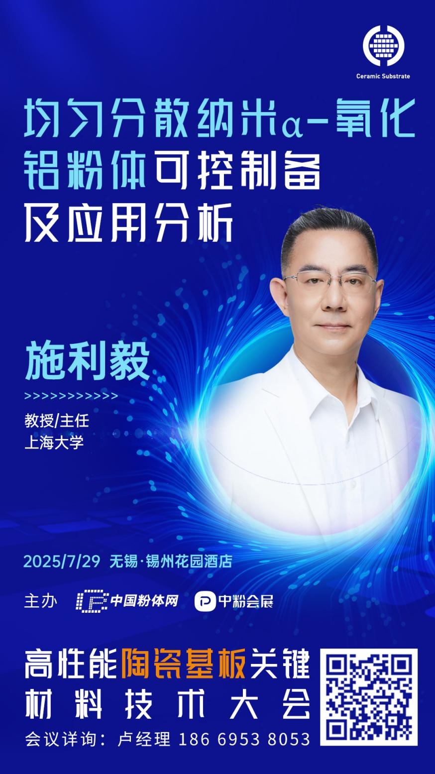 半導(dǎo)體及電子信息產(chǎn)業(yè)的快速發(fā)展對(duì)核心材料的性能提出了更高要求。陶瓷基板作為功率半導(dǎo)體器件的關(guān)鍵封裝材料,其導(dǎo)熱性能、機(jī)械強(qiáng)度、可靠性和精密程度直接決定了終端產(chǎn)品的性能與壽命。針對(duì)材料研發(fā)、制備工藝、檢測(cè)技術(shù)、應(yīng)用場(chǎng)景等核心議題,中國(guó)粉體網(wǎng)將于2025年7月29日在江蘇無錫舉辦2025年高性能陶瓷基板關(guān)鍵材料技術(shù)大會(huì)。屆時(shí),上海大學(xué)教授施利毅將作題為《均勻分散納米α-氧化鋁粉體可控制備及應(yīng)用分析》的報(bào)告,報(bào)告中將介紹團(tuán)隊(duì)在均勻分散、高純度、納米級(jí)α-氧化鋁粉體方面的研究工作進(jìn)展,并分析納米α-氧化鋁在集成電路超精密拋光、導(dǎo)熱基板及氮化鋁碳熱還原合成中的應(yīng)用前景。