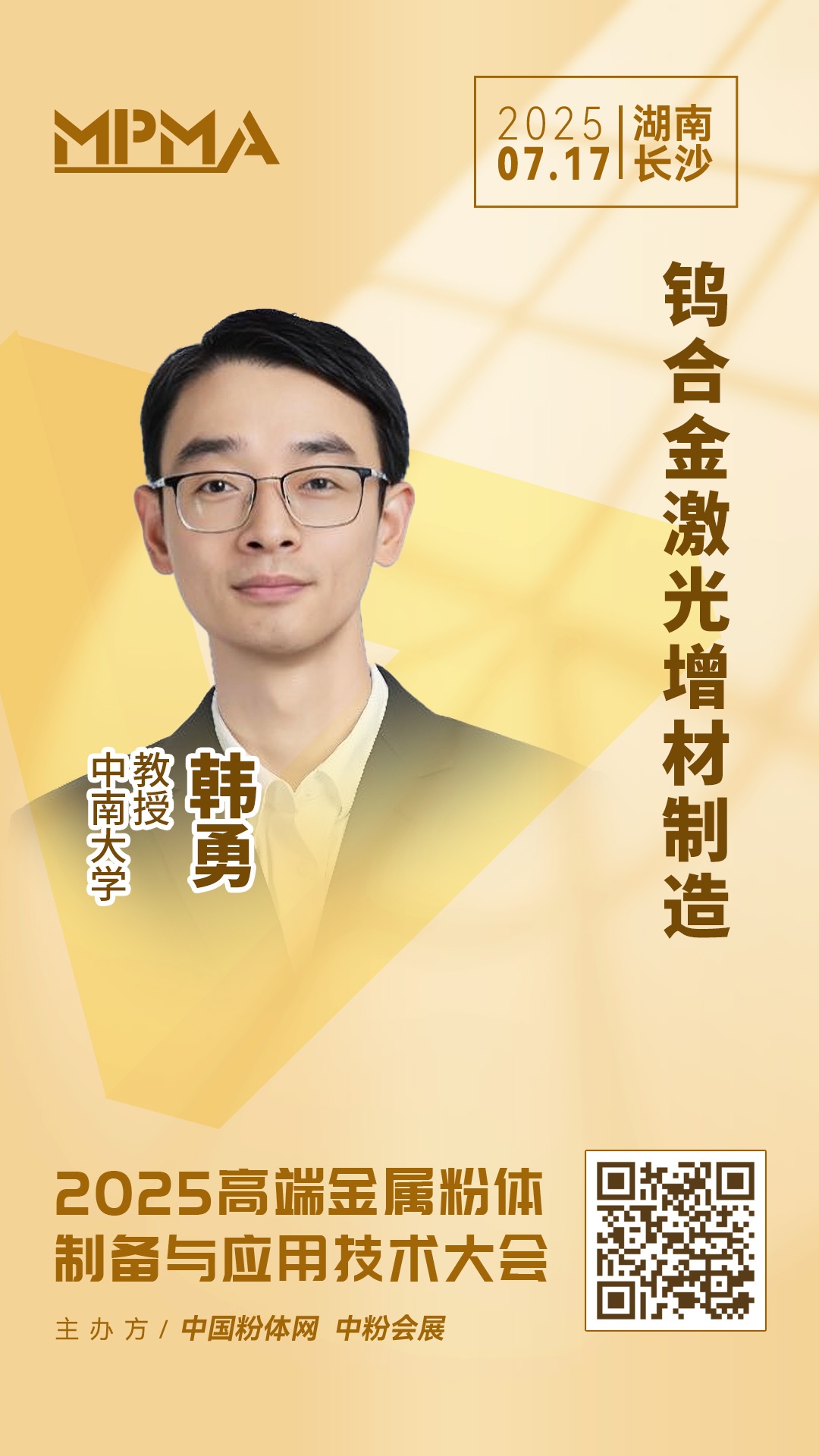 2025年7月17日,中國粉體網將在湖南·長沙舉辦“2025高端金屬粉體制備與應用技術大會暨2025通信電子、3D打印、粉末冶金市場金屬粉國產化交流會”。屆時,我們邀請到中南大學韓勇教授出席本次大會并作題為《鎢合金激光增材制造》的報告,韓勇教授將為您介紹激光增材制造為高密度鎢合金穿甲彈芯一體化成形提供新途徑。