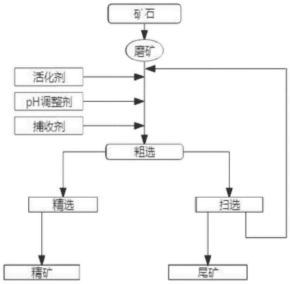 該組合捕收劑由1~9份陰離子捕收劑和1~3份陽(yáng)離子捕收劑組成;所述陰離子捕收劑為油酸、氧化石蠟皂、塔爾油、油酸鈉和十二烷基苯磺酸鈉中的至少一種;所述陽(yáng)離子捕收劑為十二胺、十八胺和醚胺中的至少一種。基于該組合捕收劑,對(duì)花崗巖尾礦進(jìn)行長(zhǎng)石石英高效浮選分離,在弱堿性條件下,有效改性石英表面,促使石英礦石表面疏水化,從而實(shí)現(xiàn)長(zhǎng)石與石英的浮選分離,工藝全流程無(wú)氟無(wú)酸,不僅降低了生產(chǎn)成本,還解決了生產(chǎn)過(guò)程中的污染問(wèn)題。