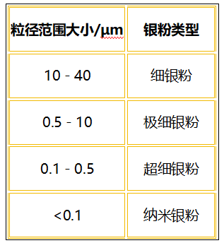 光伏銀漿中銀粉粒度種類