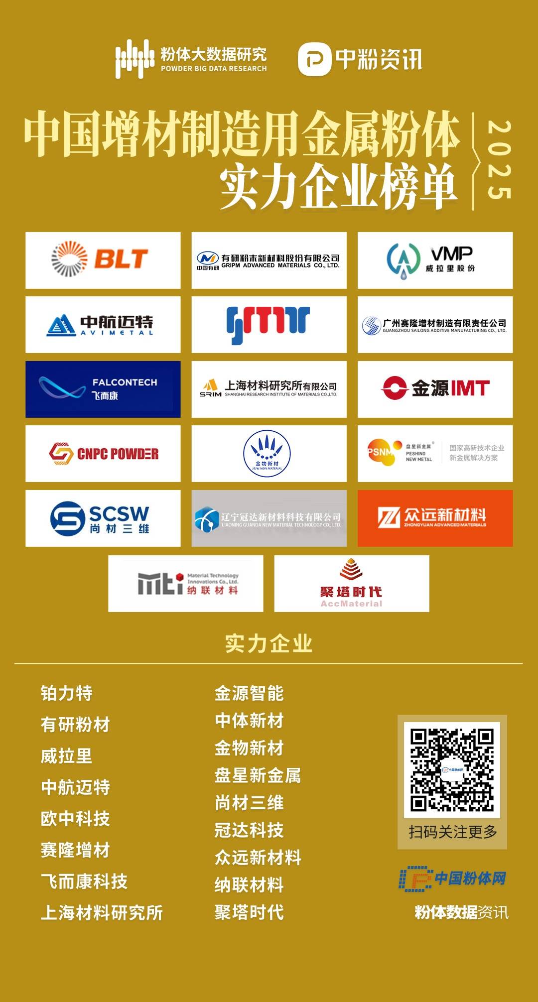 如需了解更多實(shí)力企業(yè)和特色創(chuàng)新企業(yè),敬請(qǐng)關(guān)注粉體大數(shù)據(jù)研究最新推出的《全球及中國(guó)增材制造用金屬粉體市場(chǎng)研究分析報(bào)告(2025~2027)》。
