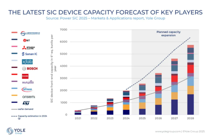 碳化硅器件產能預測;來源: Yole Group