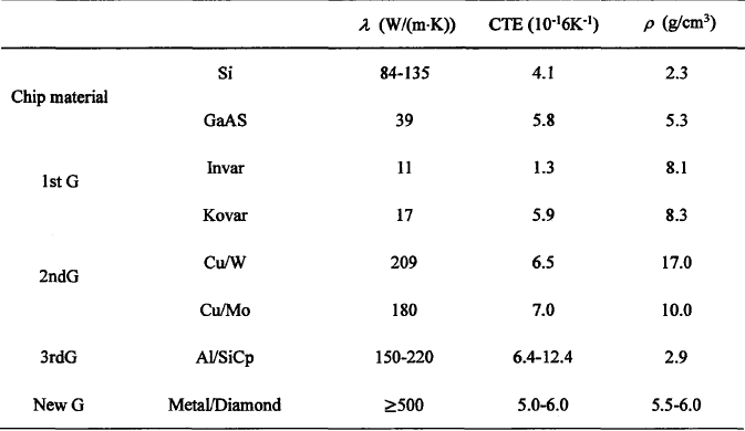 傳統的Invar、Kovar合金熱導率低,鎢銅、鉬銅合金雖然具有較低的熱膨脹系數,但熱導率低、密度高,而金屬基復合材料能夠將金屬良好的導熱性與增強體的低膨脹系數結合起來,且材料性能具有可調控性,是一種常用的熱管理材料。