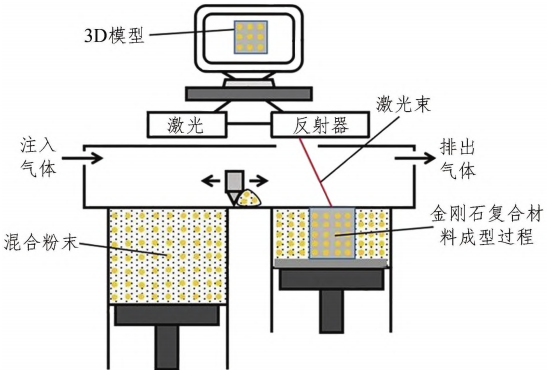增材制造(AM),俗稱3D打印技術,是一種以粉末、液體、絲材等為原料,基于零件的三維模型,逐點-逐線-逐層堆積的材料成形技術。目前報道的用于制備金剛石/金屬復合材料的增材制造技術主要基于粉末原料,包括激光選區熔化、激光熔覆、冷噴涂等,為金剛石增強金屬基復合材料的制造和應用提供了新的機遇。