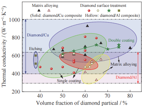 改變金剛石顆粒表面狀態:通過改變表面粗糙度和表面化學狀態影響金剛石/金屬復合材料的導熱性能和吸附性能等。