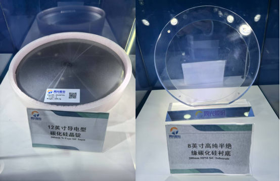 同光半導體在12英寸產品方面尚在研發驗證階段,SEMICON China展會上展示了直徑12英寸的導電型SiC晶錠(高度20+ mm)和10英寸導電型襯底樣品。此前2023年已拉制出8英寸導電型晶體樣品,8英寸襯底技術攻關取得進展。