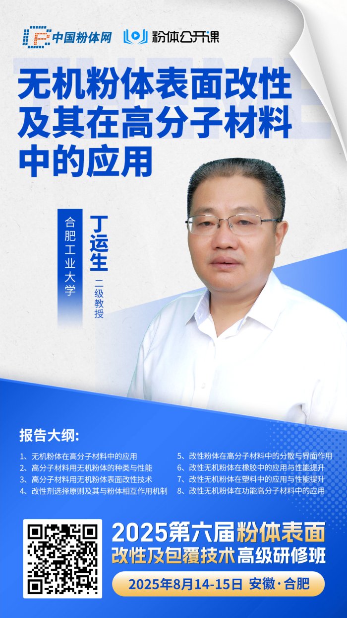 中國粉體網訊 為推動粉體表面改性及包覆技術發展,促進產學研交流合作,中國粉體網粉體公開課將于2025年8月14-15號,在安徽省合肥市舉辦“2025第六屆粉體表面改性及包覆技術高級研修班”,安徽固瑞特新材料科技有限公司邀您一同參加!