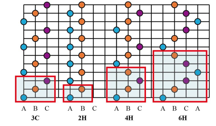 目前,SiC材料已知的晶體結構有250多種,主要類型有六方體(2H-SiC、4H-SiC、6H-SiC)和立方體3C-SiC等。