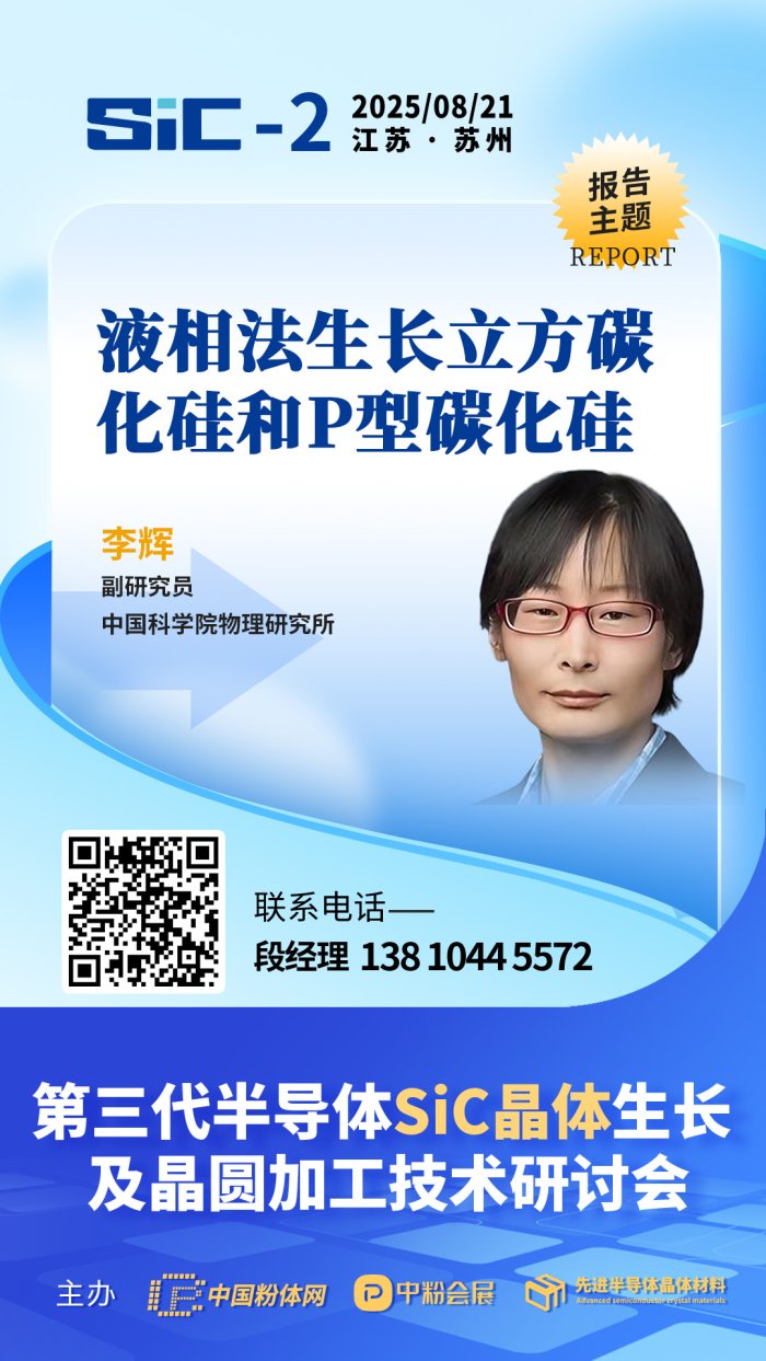 通過一系列的研究表明,液相法在生長P型4H-SiC單晶和3C-SiC單晶上具有很明顯的優勢。2025年8月21日,中國粉體網將在蘇州舉辦第三代半導體SiC晶體生長及晶圓加工技術研討會。屆時,來自中國科學院物理研究所副研究員李輝將帶來《液相法生長立方碳化硅和P型碳化硅》的報告,講述液相法在不同晶型SiC單晶生長中的應用解決方案以及研究進展,歡迎報名參會!