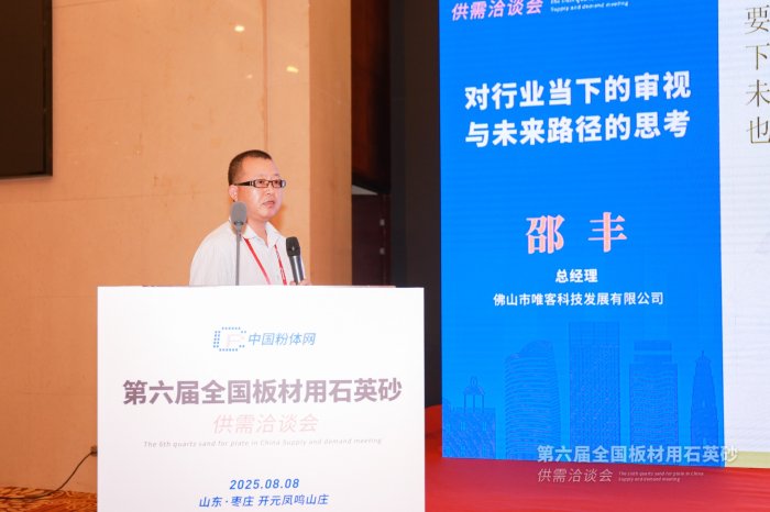 中國粉體網訊 2025年8月8日,由中國粉體網主辦的“第六屆全國板材用石英砂供需洽談會”在山東棗莊隆重召開!本屆洽談會旨在挖掘增量市場潛力、賦能產業高質量發展,聚焦石英石板材產業發展的關鍵議題,深度剖析國內外市場最新動態與趨勢,重點分享零硅石英石、綠色提純工藝等前沿技術成果與實踐經驗,為行業發展注入新活力。