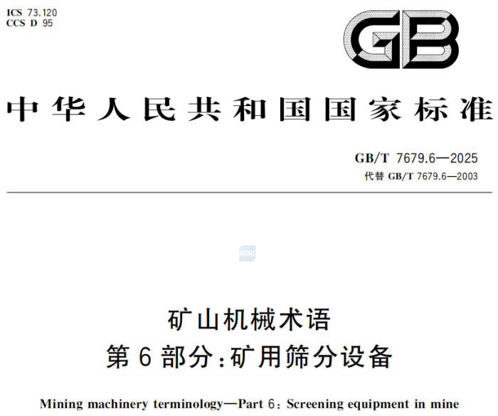 據中國粉體網獲悉,《礦山機械術語第6部分:礦用篩分設備》(GB/T7679.6-2025)于2025年5月30日發布,并將于2025年12月1日實施。本文件起草單位包括:洛陽礦山機械工程設計研究院有限責任公司、浙江武精機器制造有限公司、中信重工機械股份有限公司、洛陽正方圓重礦機械檢驗技術有限責任公司、中實洛陽重型機械有限公司、中國重型機械研究院股份公司。