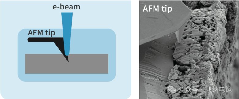 AFM-in-SEM 技術的出現,為 SSB 的檢測和優化帶來了革命性的變化。這種技術將原子力顯微鏡(AFM)與掃描電子顯微鏡(SEM)相結合,實現了多模態相關分析。它不僅能夠精確地將探針導航至感興趣的區域(ROI),還能對電學性質進行可靠的表征。