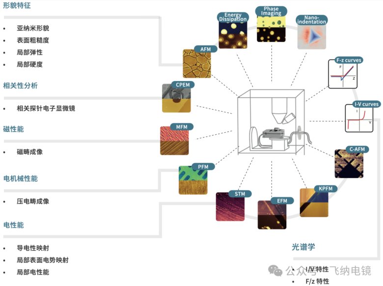 原子力掃描電鏡一體機。結合了飛納臺式掃描電鏡和原子力顯微鏡的優勢,實現了在同一系統中對樣品進行多模態關聯分析。