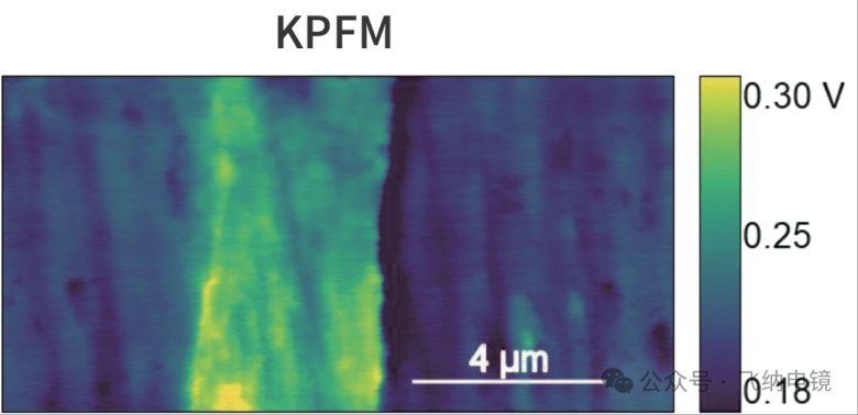 導電原子力顯微鏡(CAFM)用于測量樣品的局部導電性,為了解脫離的 NMC 顆粒的電接觸失效提供了分析方法。此外,開爾文探針力顯微鏡(KPFM)能夠分析局部表面電勢,有助于我們觀察 NMC 顆粒的荷電狀態。同時,掃描電子顯微鏡(SEM)為顆粒的形貌和結構進行了良好表征,而 EDS 則提供了元素分析,增強了我們對電池系統內材料的組成和分布的理解。