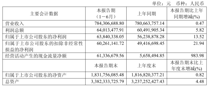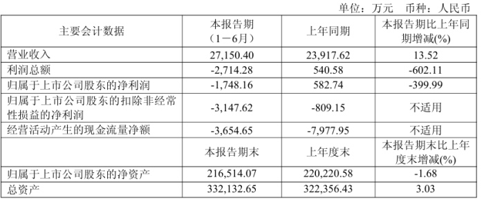 公司上半年實現營業收入2.72億元,同比增長13.52%;歸母凈利潤-1748.16萬元,上年同期582.74萬元;扣非歸母凈利潤-3147.62萬元,上年同期-809.15萬元。