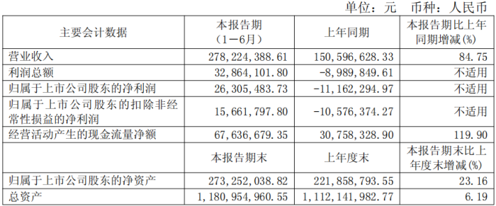 中國粉體網(wǎng)訊 8月30日,四川金頂發(fā)布2025年半年報。報告期內(nèi),公司實現(xiàn)營業(yè)收入278,224,388.61元,同比增長84.75%;利潤總額32,864,101.80元,歸屬于上市公司的扣除非經(jīng)常性損益的凈利潤15,661,797.80元。