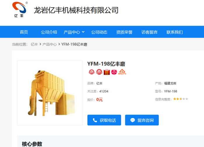 依托粉享通的建站體系,龍巖億豐構(gòu)建了 7×24 小時(shí)不間斷的產(chǎn)品展示陣地。無論是主打產(chǎn)品超細(xì)粉碎機(jī)的核心參數(shù)、氣流分級(jí)機(jī)的工作原理,都能通過圖文、視頻等形式直觀呈現(xiàn)。
