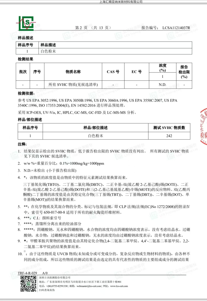 值得一提的,匯精亞納米新材料的二氧化硅產(chǎn)品已通過(guò)了第三方機(jī)構(gòu)檢測(cè),檢測(cè)報(bào)告如下:
