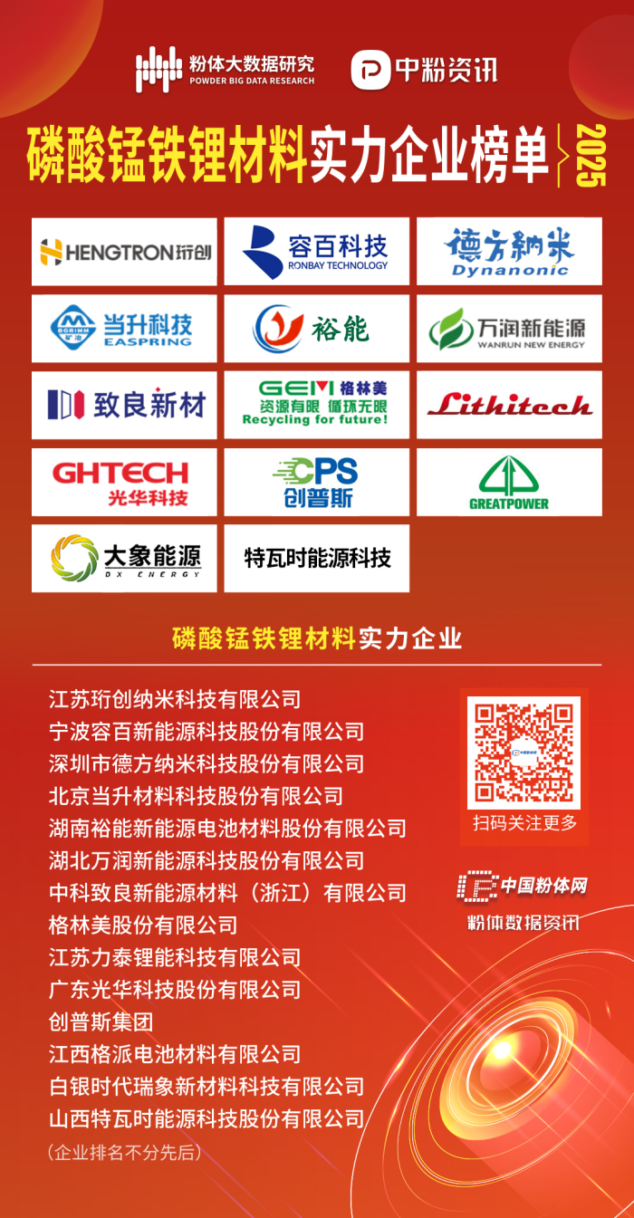 2025磷酸錳鐵鋰材料實力企業榜單如下(排名不分先后):