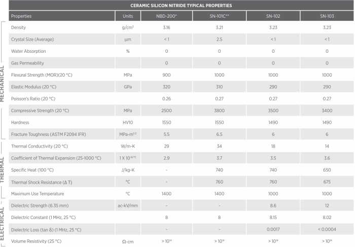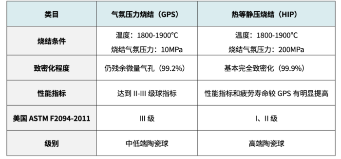 GPS氮化硅與HIP氮化硅性能對(duì)照表