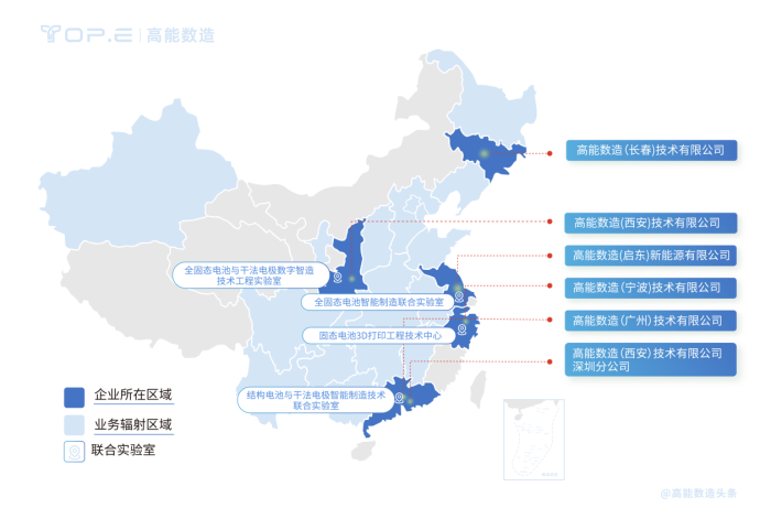 自 2021 年成立起,高能數造以 “研發 + 產業化” 雙線并行戰略,構建全國協同網絡:西安為核心研發策源地,持續輸出前沿技術;長春、寧波、啟東分別在服務主機廠、新材料驗證、設備制造環節筑牢產業支撐,形成覆蓋研發、生產、制造的全鏈條能力。2025年9 月,廣州第二總部建成與首條干法電極中試線落地,成為高能數造發展的雙里程碑。